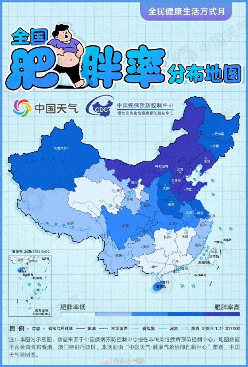 看这图上的分布情况,感觉北方人普遍都比南方人要肥胖,这是因为北方人碳水摄入比南方高吗?还是说吃肉的终究还是要比吃海鲜的人要更肥呢